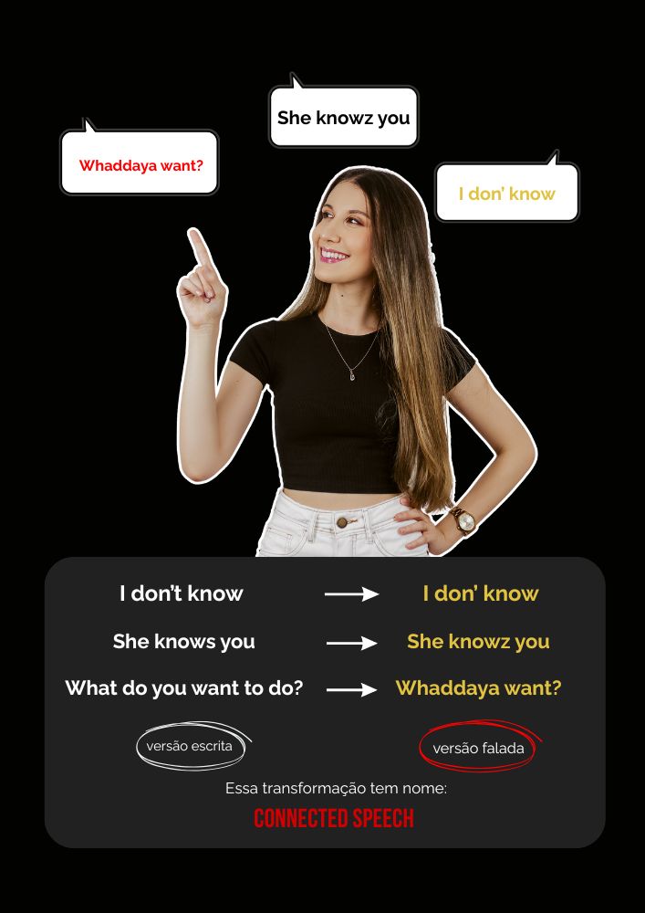 No Minicurso Connected Speech, meu objetivo é te ajudar a compreender o inglês falado com naturalidade, focando nas expressões, reduções e contrações mais comuns.